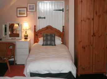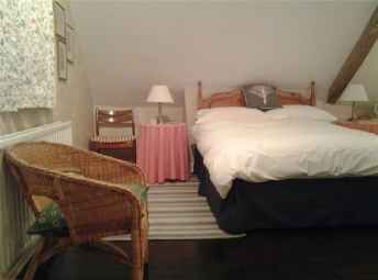The bedroom is a self-contained family room with private staircase, a double and a single bed. The room is spacious and we frequently accommodate families of four with a zed-bed. Facilities include an ensuite shower-room, television, kettle, tea and coffee, hair-dryer and drying room. Our generous farmhouse breakfast includes home-made jams and marmalade and will set you up for the day. There is off-road parking and the large garden is available for guests to enjoy.