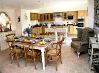 This very spacious and well equipped farmhouse kitchen / dining room offers an ideal space in which friends and family can meet, eat and relax. The kitchen includes granite worktops, a large ceramic hob, double oven, microwave, dishwasher, fridge-freezer, and CD radio. The dining area has a beautiful, hand-crafted armchair, plus a high quality farmhouse table and chairs, and a French door leading out into the gardens.