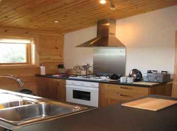 The open plan kitchen, dining room and lounge have been designed for comfort and relaxation. The kitchen includes a dishwasher, washer/dryer, microwave and fridge, along with the usual amenities. The lounge area has a wall mounted flat screen TV with Freeview, a DVD Player, Playstation 2, and free WiFi . The dining room has Pine dining furniture (6 places), and opens out onto the covered, decked veranda.