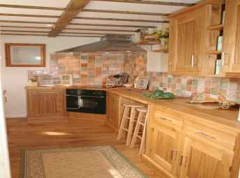 Newly fitted solid oak kitchen with oak tops and tiled backs. Halogen hob and oven with grill, dishwasher, washing machine/dryer, under fridge/freezer.