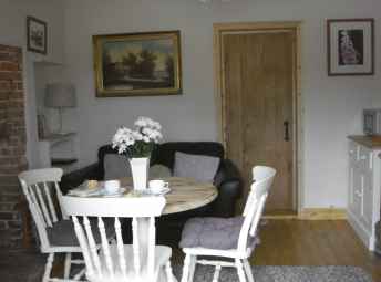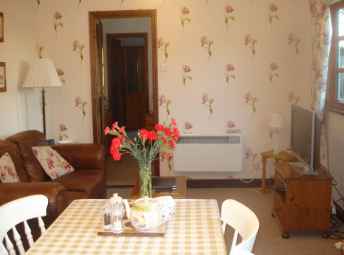 Lounge - Comfortable sofa, 32in Flat screen digital TV with Sky and Blueray player, Dining Table and Chairs.