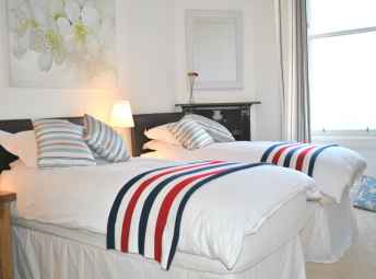 Puffin's Lookout - 2 Bedrooms , each with two singles that can become super kings, one bedroom looks out on beach, whilst second bedroom (which has en-suite) looks out on parkland. Additional sofa bed in lounge allows 2 additional occupants. Large lounge looking out on beach with open plan dining & kitchen.