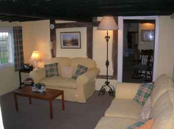 The cosy living room has an oil fired Rayburn which warms the house & heats the water, settees & armchair, TV, DVD, radio, telephone, WiFi broadband etc .