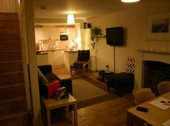 2 Printers Court: This quirky cottage-like apartment is full of character with it�s large exposed brick fireplace, high vaulted ceilings and original wooden beams and frames. The property is split over two floors: the first floor has two bedrooms (one double, one twin) and a bathroom with shower over the bath. Upstairs is an open-plan floor with kitchen, dining space and living area. The windows on this floor in particular boast beautiful views over the garden and across the red rooftops of Sherborne's historic district right across to the famous Abbey closeby.