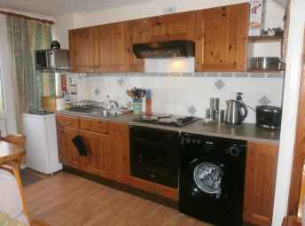 Well-equipped kitchen with fridge-freezer, microwave, washing-machine and more.